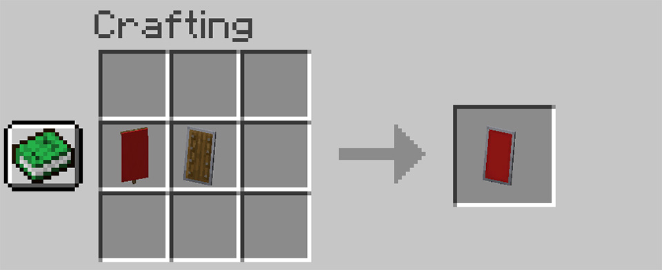 Combine the necessary items on a crafting table to make these special banner pattern items. Place the paper in the left middle slot and the corresponding item in the middle slot of your crafting table.